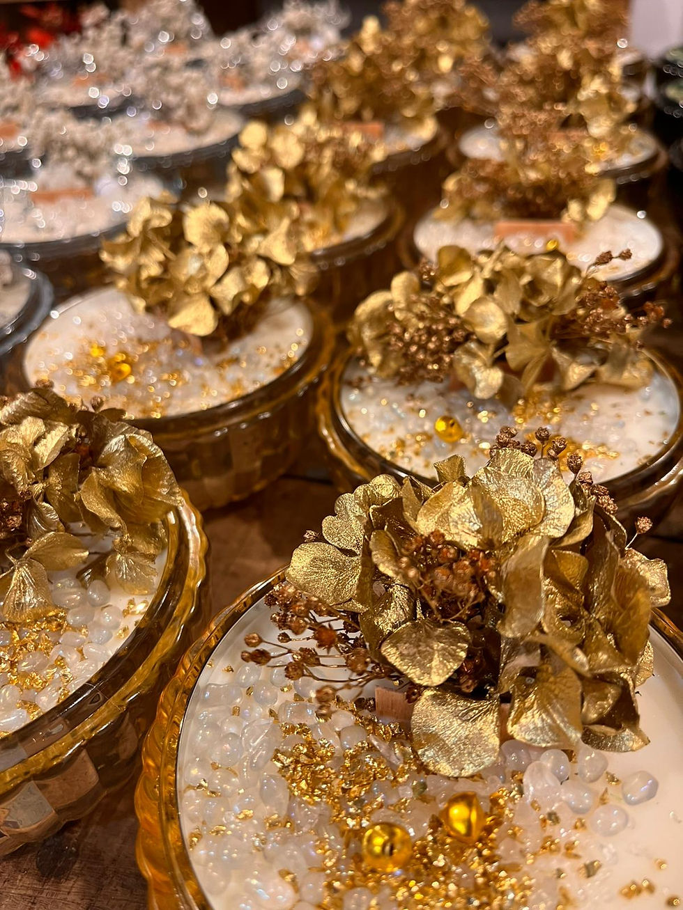 Avec son joli pot en verre, son étiquette personnalisée ses Fleurs séchée au couleur de votre évènement , elle est tout simplement parfaite .